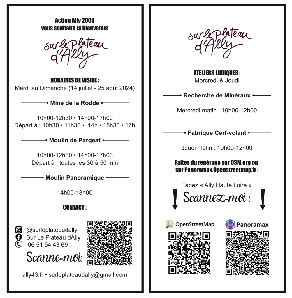 Horaires d’ouverture valable pour la période du 14 juillet au 25 août 2024.